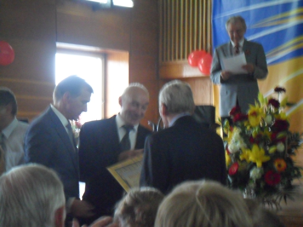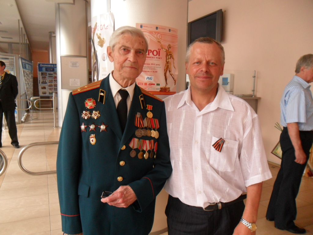 Учасники урочистих зборів з нагоди відзначення 67-ї річниці Перемоги у Великій Вітчизняній війні 1941 – 1945 років (з ліва на право): Столярова Ніна Олексіївна (дитина війни, 1933 р. н.) – 5 – разова чемпіонка світу, 7 – разова чемпіонка Європи, заслужений майстер спорту з кульової стрільби; Уткін Олександр Якович (1925 р. н.) – ветеран війни, радист – гідроакустик, учасник бойових дій на Балтійському та Чорному морях, капітан першого рангу у відставці, майстер спорту, багато років працював заступником директора республіканської школи вищої спортивної майстерності, полковник у відставці; Биков Віктор Харитонович (дитина війни, 1935 р.н.), заслужений тренер СРСР з фехтування, підготував багатьох чемпіонів та призерів ХХІ, ХХІІ, ХХІV Олімпійських ігор, чемпіонів світу та Європи.