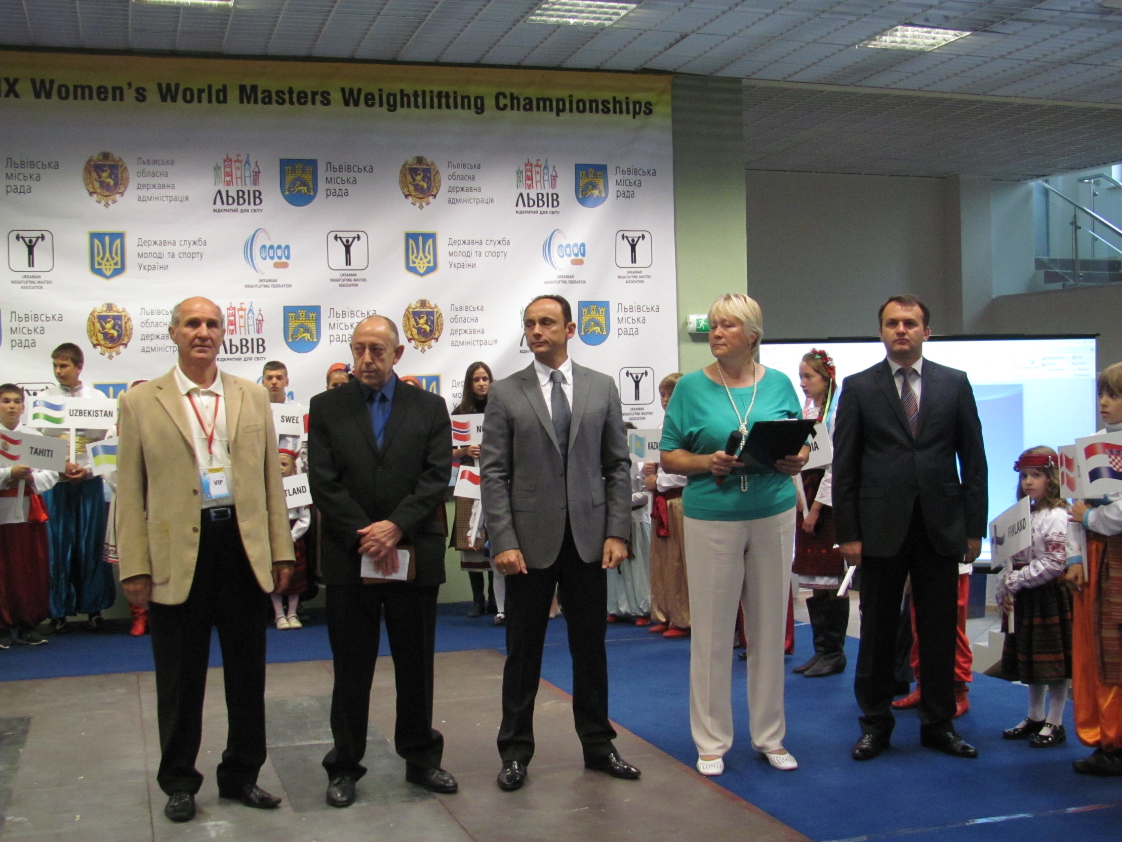 З вітальним словом до учасників престижних змагань світового масштабу звернулися Директор департаменту фізичного виховання та масового спорту Державної служби молоді та спорту України, шеф місії олімпійської збірної команди України на Іграх ХХХ Олімпіади-2012, срібна призерка Ігор ХХII Олімпіади з академічного веслування п’ятиразова чемпіонка світу Ніна Уманець, заступник голови Львівської обласної державної адміністрації Володимир Губицький, перший заступник міського голови Львова Олег Синютка, секретар Міжнародної федерації важкої атлетики Біл Бартон.