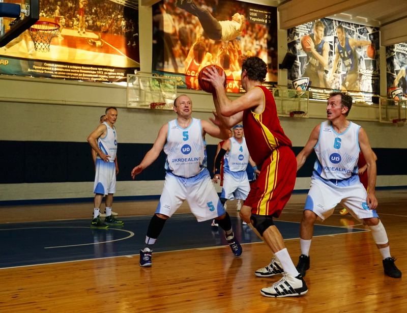 7.06.14. 9-00. Вторая встреча со сборной Киевской области. Первый период. Игра началась в быстром темпе: сложилась, если можно так выразится, дуэль между А.Веденеевым (игрок явно не баскетбольного роста и старше 65) и гигантом С.Смагиным. И ветеран А.Веденеев выиграл 10 : 7, и первый период 14 : 11 выиграла команда сборной Киевской области.